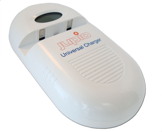 Jupio Universal laddare för din digitalkamera, videokamera eller mobiltelefonbatteri.