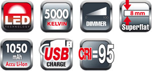 Super flat and dimmable daylight light box with build-in rechargeable battery.